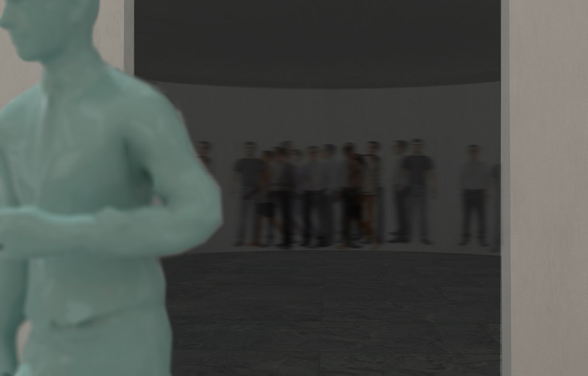 Se emplaza un cilindro (10 mts x 3 mt) en el centro de la sala, el cual en su interior tendrá videoproyectores, sensores de movimiento y dispositivos de captura de imagen y sonido. Cuando el visitante ingresa en el cilindro, su imagen quedará capturada para ser proyectada luego de que este salgasale del cilindro. La imagen de este visitante quedará superpuesta a modo de palimpsesto en la imagen de los visitantes anteriores.