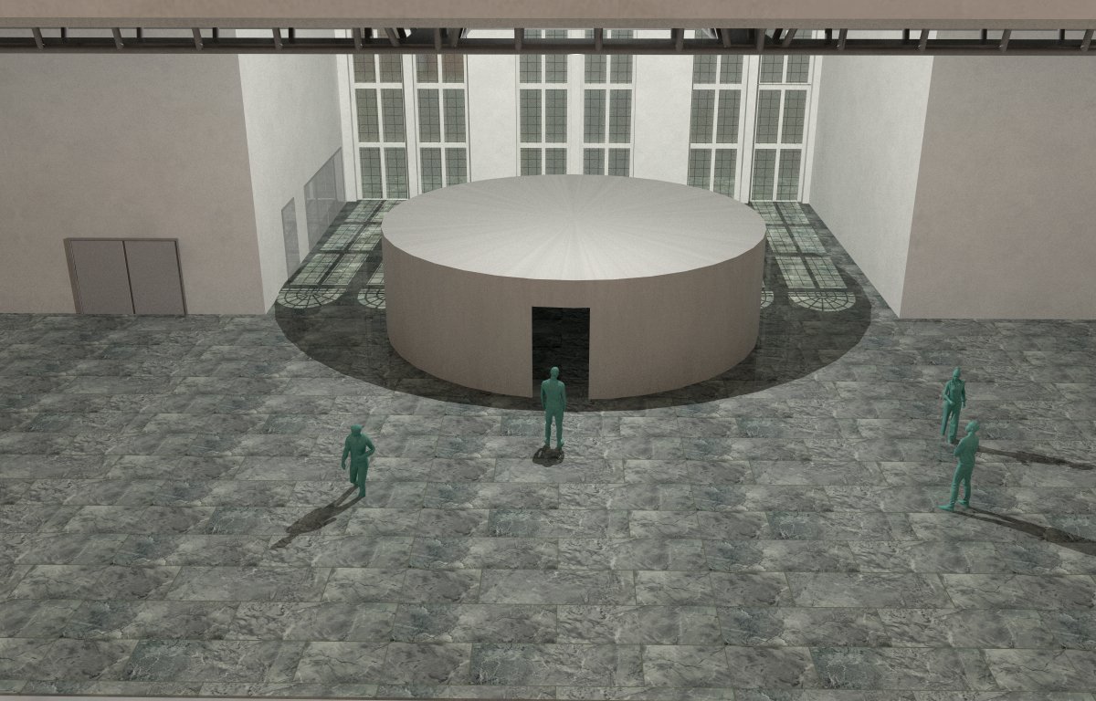 • Hay un cilindro blanco de 10 mt de diámetro por 3 mt. de Alto, este cilindro tiene un acceso el cual permite el ingreso de los visitantes a su interior.