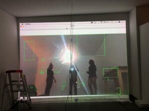 2. Diseñar y construir un espacio para los visitantes donde se captura su presencia, la cual quedará registrada en el lugar sobrepuesta a la imagen de otros visitantes que hicieron parte de la propuesta.