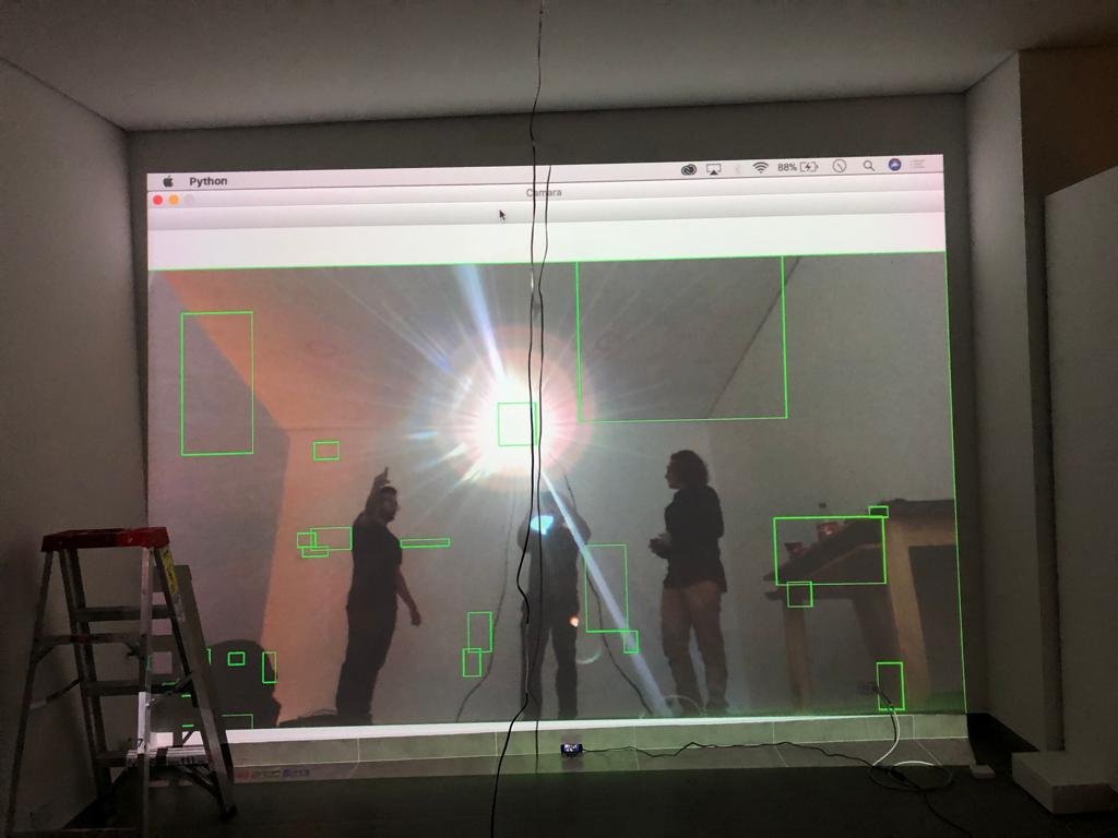 • Cuando el visitante sale del cilindro, inmediatamente, las luces se atenúan y los computadores activan una video proyección con el registro de los movimientos y acciones que realizó la persona al interior del cilindro.